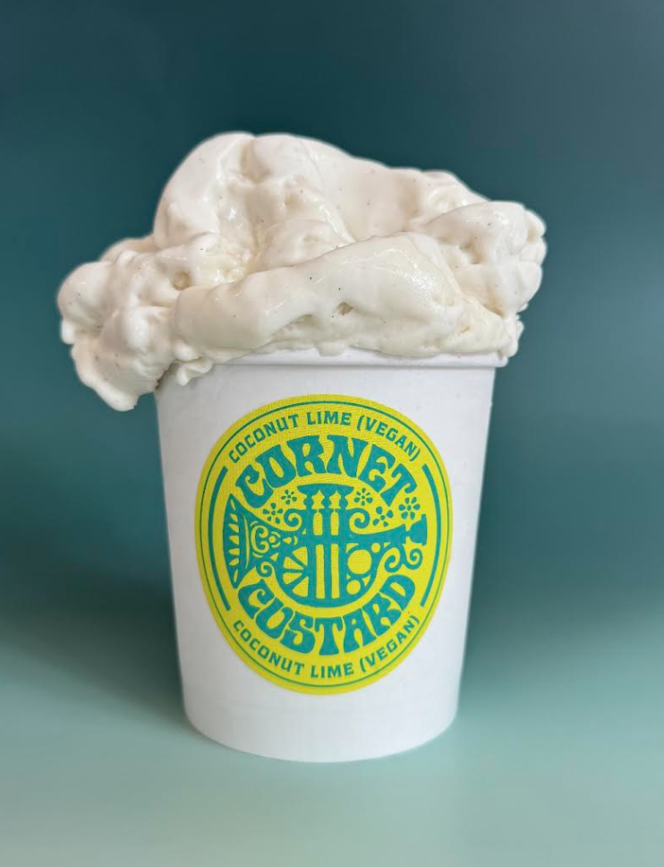 Swirls of our super coconutty - “custard” & tart, refreshing lime sorbet. This is one of our most popular flavors. Super tropical & bright.