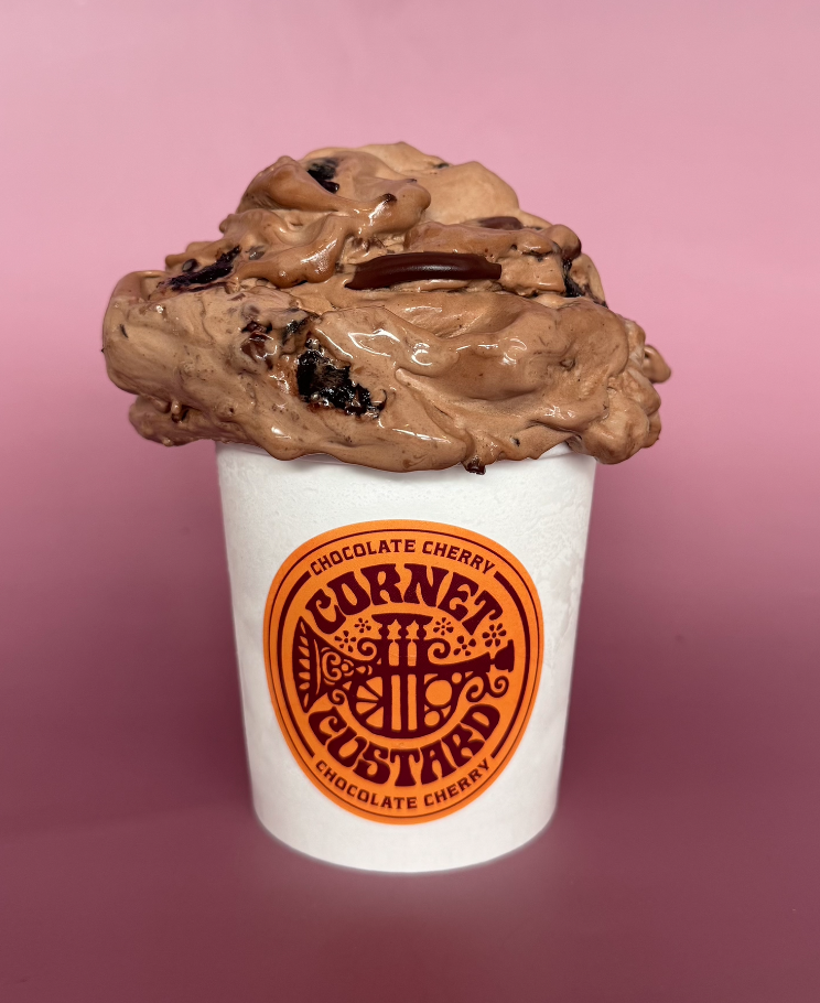 Celebrate love with our Chocolate Cherry — a perfect flavor for sharing on Valentine’s Day. Our rich chocolate custard, made with premium Cacao Barry cocoa, is generously studded with authentic Luxardo maraschino cherries from Italy and finished with a ribbon of ganache prepared from 70% Valrhona Dark Chocolate. This is a timeless pairing!